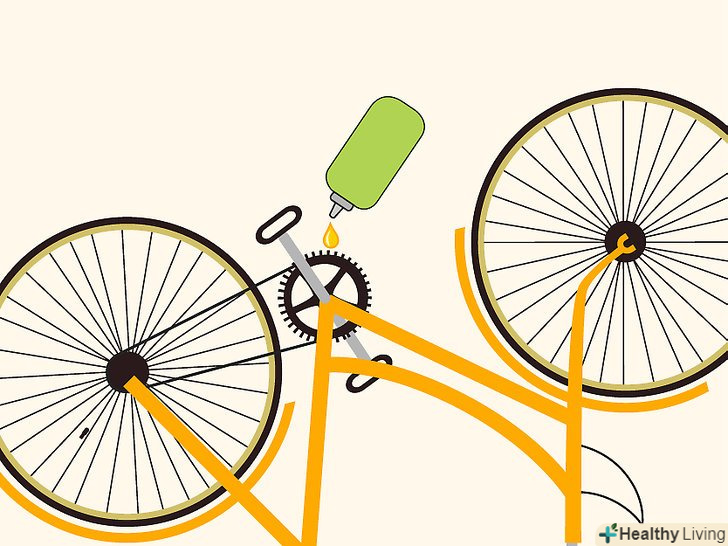 ЗмастітьЛанцюг.якісна мастило ланцюга захистить її від подальшої корозії і скупчення бруду. Розташуйте носик мастила над центральною точкою ланцюга. Обертайте колеса велосипеда і повільно видавлюйте мастило на ланцюг. Коли ланцюг повернеться у вихідне положення, велосипед буде знову готовий до їзди.[16]
