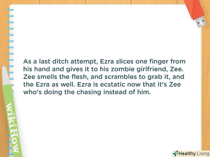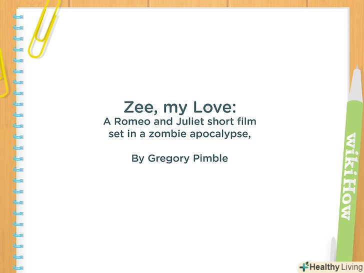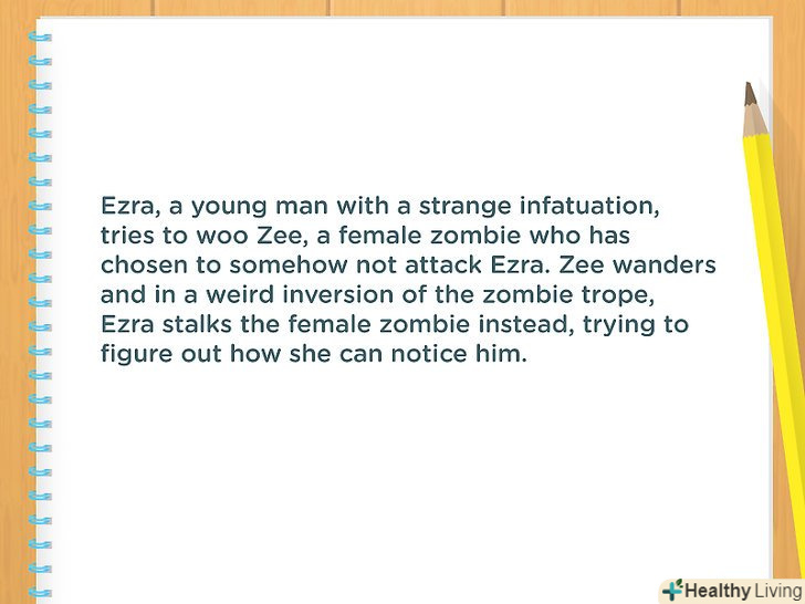 Враховуйте особливості жанру.короткометражні фільми стають більш успішними, якщо вони відносяться до конкретного жанру — жахи, трилер, романтична комедія, фільм-дорослішання. Виберіть жанр, який надихне вас на хороший сценарій. Використовуйте як вже знайомі, так і унікальні образи.[12]- Наприклад, напишіть сценарій фільму жахів, в якому протагоніст закохується в зомбі під час зомбі-апокаліпсису. Також можна зняти фільм про дорослішання, в якому головний персонаж подружився з прибульцем-підлітком, що вижив після аварії на пляжі.