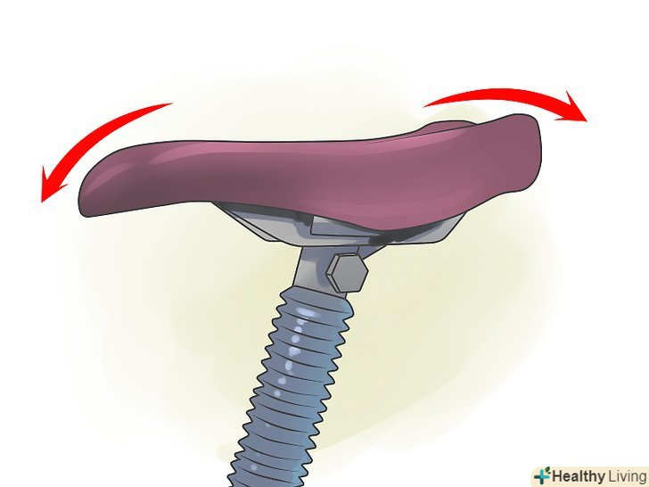 Відрегулюйте сидіння щодо рами велосипеда.Носик сидіння зазвичай паралельний рамі велосипеда. Подивіться на сидіння зверху, так ви побачите, встановлено воно в лінію з рамою чи ні. Залежно від особливостей кожної людини вам може бути зручніше повернути сидіння трохи вліво або вправо. [9]