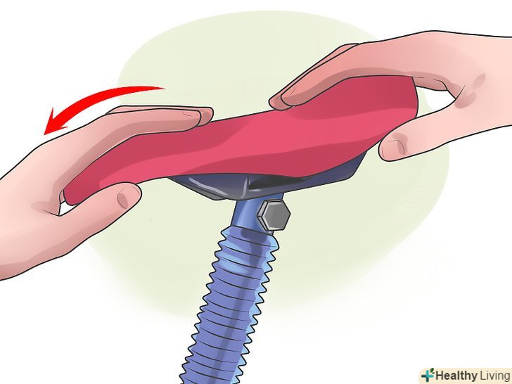Підніміть сидіння.відсуньте велосипед і відрегулюйте висоту сидіння до позначки. Сидіння повинно вільно рухатися вгору і вниз, хоча, можливо, потрібно буде сідлодержатель трохи покрутити. Сідло повинно плавно переміщатися вгору і вниз. Не потрібно рухати седложержатель з боку в бік, оскільки це може привести до появи подряпин на підсідельній трубі рами. Підніміть сидіння до оптимальної для Вас позиції.- На сидінні велосипеда є мінімальна кількість відміток вставки на трубі. Це мінімальна відстань, на яку входить седлодержатель в раму велосипеда, щоб сидіння не піднімалося вище. Якщо вам необхідно підняти або опустити сидіння нижче наявного обмеження, то цей велосипед вам не підходить.