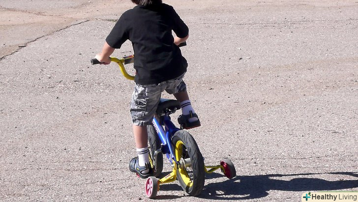 Протестуйте велосипед.нехай дитина сяде на велосипед і перевірить, чи підходить він йому за розмірами. Немає необхідності у великій відстані між рамою і тілом, так як поки діти вчаться їздити на велосипеді, їм постійно доведеться закидати ногу через раму.- Не купуйте велосипед великих розмірів, щоб не купувати новий, коли дитина підросте. Це ускладнить їзду, і дитина не буде отримувати задоволення від катання.