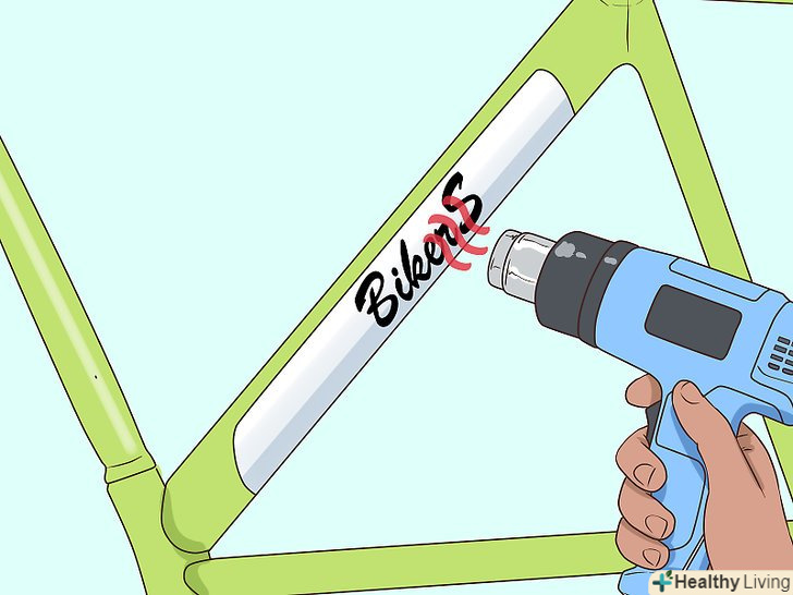 Видаліть з рами будь-які наклейки або перекладні логотипи.можливо, вам доведеться добре попрацювати, щоб видалити все це, особливо якщо наклейки встигли постаріти і сильно в'їлися в фарбу. Спробуйте скористатися феном для волосся або будівельним феном, щоб нагріти наклейки, якщо у вас зовсім не виходить їх відклеїти. Під впливом тепла клей на наклейках повинен ослабнути, і вам стане простіше відклеїти їх від рами.[2]- Якщо у вас не виходить зняти наклейку руками, скористайтеся шпателем, щоб підчепити її куточок і спочатку відклеїти наклейку по краях.[3]