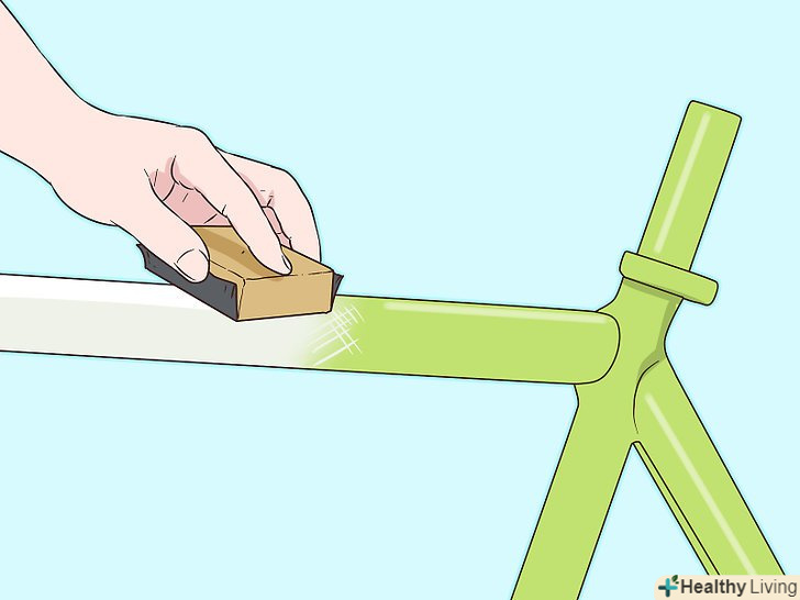 Зачистіть раму наждачним папером, щоб новий шар фарби добре тримався.якщо Велосипедна рама пофарбована товстим шаром фарби або має глянсове покриття, візьміть грубу (з великим зерном) наждачний папір, щоб видалити стару фарбу. Якщо на рамі присутній матова фарба або рама зовсім не пофарбована, скористайтеся дрібнозернистим наждачним папером.[5]
