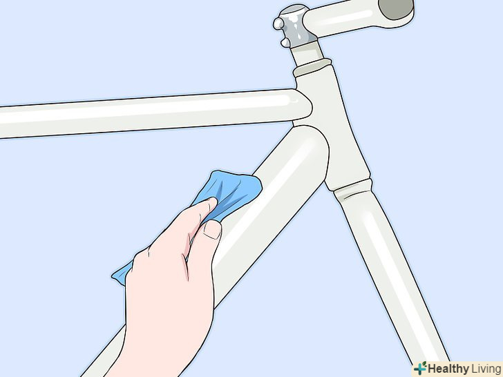 Ретельно протріть велосипед вологою ганчіркою і дайте йому висохнути.для цього скористайтеся ганчіркою і мильною водою.[6]