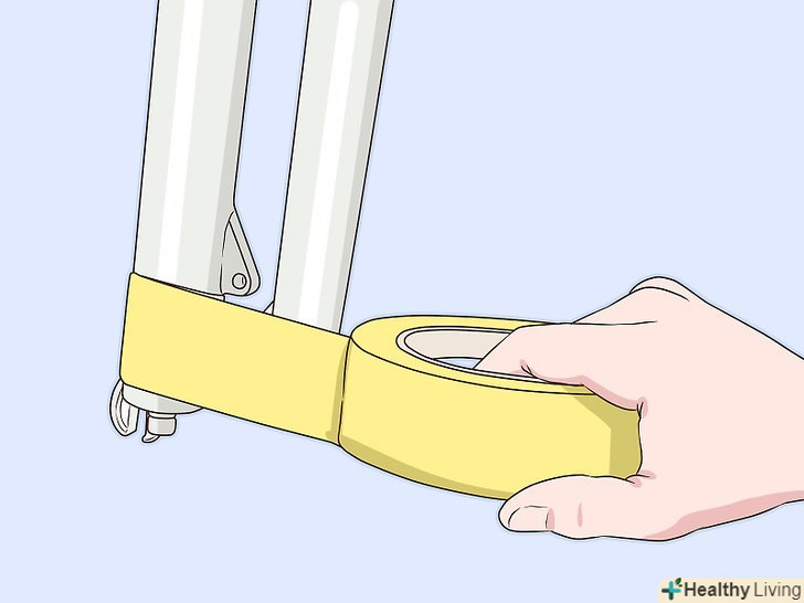 Захистіть малярським скотчем ті ділянки рами, на які не повинна потрапити фарба. у велосипеда є кілька зон, які повинні залишатися без фарби:[7]- Точки кріплення гальм;