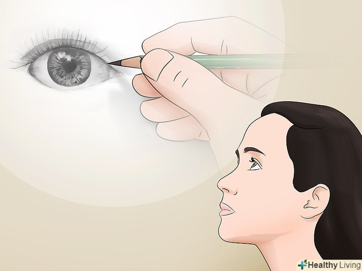 Навчіться уявляти собі сам процес малювання. коли не будете зайняті безпосередньо малюванням, Озирніться навколо. Подумайте, як можна було б відобразити навколишнє оточення в малюнку. Наприклад, уявіть, як ви накладаєте тіні навколо намальованих очей, промальовує зіниці і райдужні оболонки. Такий хід мислення дозволить вам продумати роботу над лініями і створенням свого власного стилю. [8] Навчіться уявляти собі сам процес малювання. коли не будете зайняті безпосередньо малюванням, Озирніться навколо. Подумайте, як можна було б відобразити навколишнє оточення в малюнку. Наприклад, уявіть, як ви накладаєте тіні навколо намальованих очей, промальовує зіниці і райдужні оболонки. Такий хід мислення дозволить вам продумати роботу над лініями і створенням свого власного стилю. [8]- Мета полягає в тому, щоб навчитися бачити деталі, а не тільки загальні форми. Замість того щоб думати про саме око, думайте про лінії і кольорах, які дозволять вам намалювати це око.