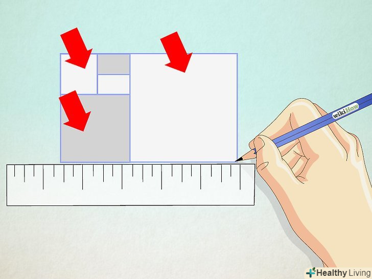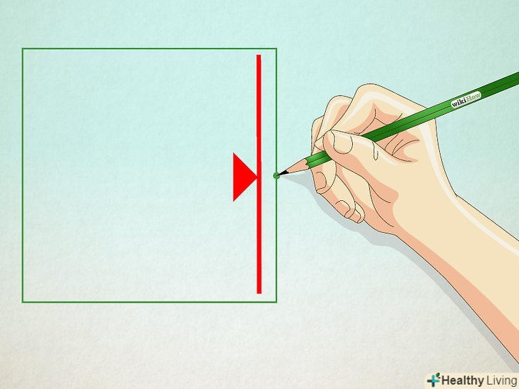 Проведіть лінію. поверніть циркуль до тих пір, поки олівець не досягне сторони квадрата, на якій стоїть голка. Точка перетину лінії з цією стороною буде кутом для нового прямокутника. Проведіть лінію. поверніть циркуль до тих пір, поки олівець не досягне сторони квадрата, на якій стоїть голка. Точка перетину лінії з цією стороною буде кутом для нового прямокутника.