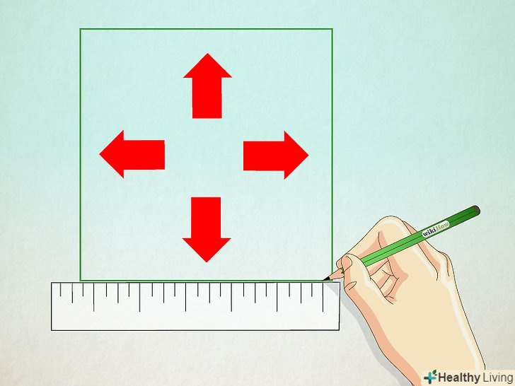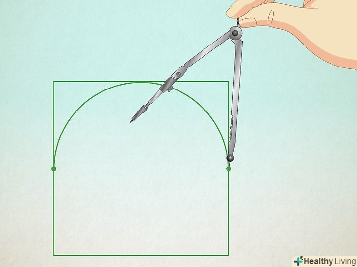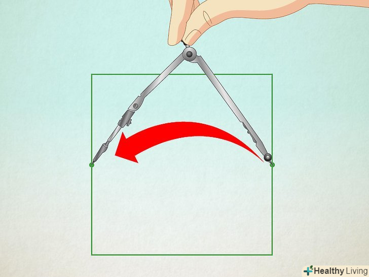 Встановіть циркуль в середину і протилежний кут. Візьміть циркуль і встановіть голку в середину сторони, знайдену вами раніше. Олівець циркуля поставте в один з двох кутів, протилежних цій стороні квадрата. Встановіть циркуль в середину і протилежний кут. Візьміть циркуль і встановіть голку в середину сторони, знайдену вами раніше. Олівець циркуля поставте в один з двох кутів, протилежних цій стороні квадрата.