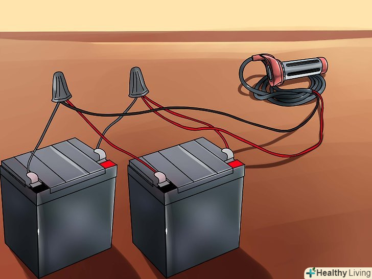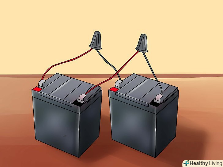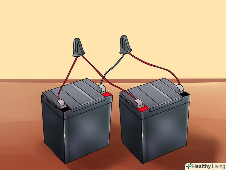 Послідовне підключення акумуляторів (напруга від акумуляторів підсумовується; як приклад давайте використовувати 12-вольтові батареї): з'єднайте позитивний контакт від одного акумулятора з негативним контактом іншого акумулятора. Негативний контакт одного акумулятора і позитивний контакт від іншого дають разом 24В!