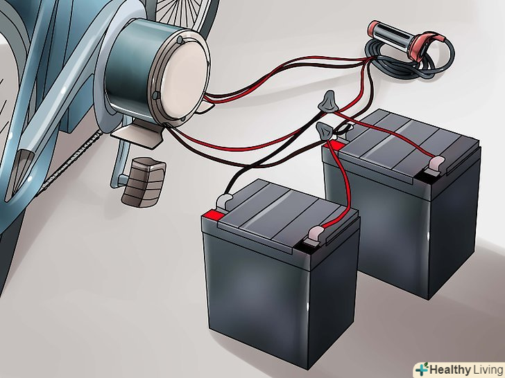 Вам буде потрібно мінімум 1 ампер-годину на 1,5 км в 36-і вольтової системі і дроти, щоб підключити все це. кілька акумуляторів можна з'єднати разом "послідовно", щоб отримати більш високу напругу в системі, або" паралельно", щоб отримати більше ампер-годин. На сайті electrovelik.com ви можете придбати акумулятор на 12В і 7 ампер-годин. Щоб з'єднати акумулятори разом, купите плетений мідний кабель. Провід з твердою серцевиною (використовувані для побутової електропроводки) не витримають вібрації, створюваної рухомим велосипедом.