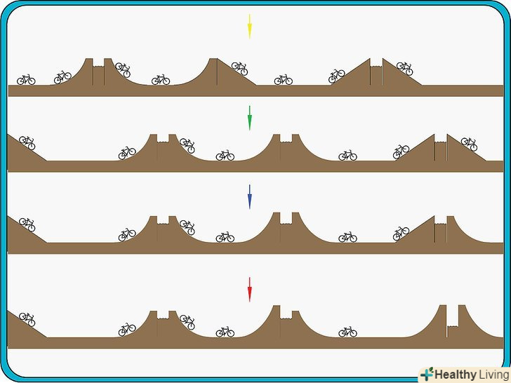 - Не крутите педалі на трампліні. Тримайте педалі паралельно землі.