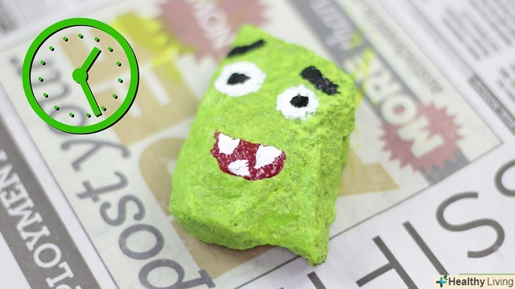 Дайте фарбі висохнути. покладіть камінь в безпечне місце, де його не будуть чіпати і рухати. Коли ви закінчите малюнок, дайте фарбі хоча б кілька годин або навіть цілий день, щоб висохнути. Якщо вам здається, що камінь вже готовий до подальшої роботи, спочатку перевірте, що всі його частини дійсно висохли. [11]- Напишіть на камені власне ім'я і дату. на камені можна написати власне ім'я і поточну дату, щоб не забути, коли ви його розфарбували. Даний крок особливо хороший для дітей. Скористайтеся для цього перманентним маркером, щоб напис не стерлася і залишилася на камені. [12]