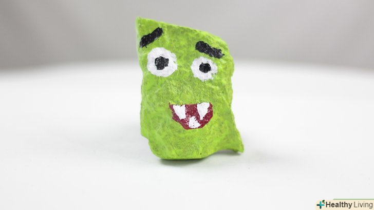 Виберіть дизайн. Виберіть для каменю будь-який дизайн, який тільки захочете. Можна повністю розписати камінь так, щоб він нагадував собою що-небудь, наприклад тварина, або намалювати на камені невеликий пейзаж. З тварин можна намалювати кішку, собаку, рибу або сову. В якості пейзажу можна намалювати будиночок або гілка дерева з сидить на ній птахом. Якщо камінь досить великий, на ньому можна написати що-небудь надихає, наприклад, слово «віра» або «надія». [5]- На камені також можна намалювати монстрів на зразок Франкенштейна, щоб використовувати його для декорування приміщення до Хелловіну.