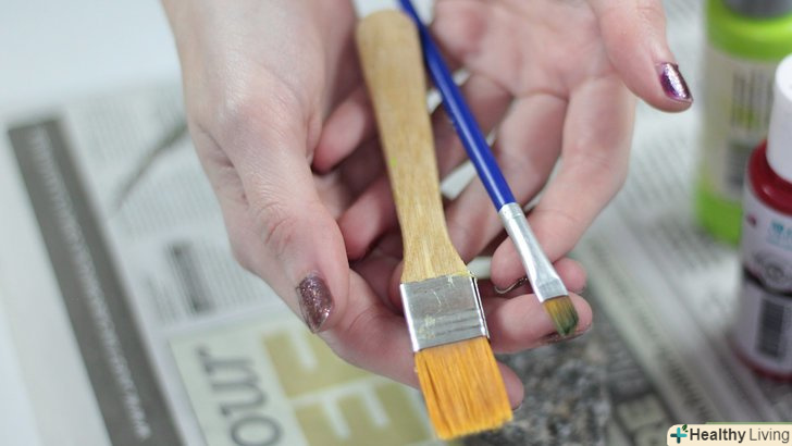 Використовуйте недорогі Кисті для малювання. камінь сточує щетину пензликів, особливо в тому випадку, якщо він досить шорсткий. Купіть упаковку недорогих пензликів різного розміру. Так у вас будуть кисті як для зафарбовування великих зон, так і для промальовування дрібних деталей. [8]- Якщо ви хочете використовувати спеціалізовані кисті, купуйте напівжорсткі художні кисті для акрилових фарб.