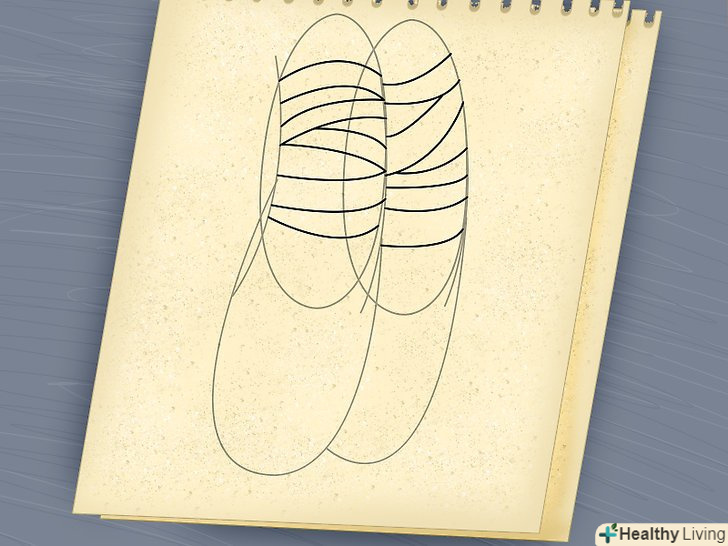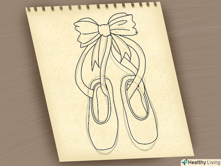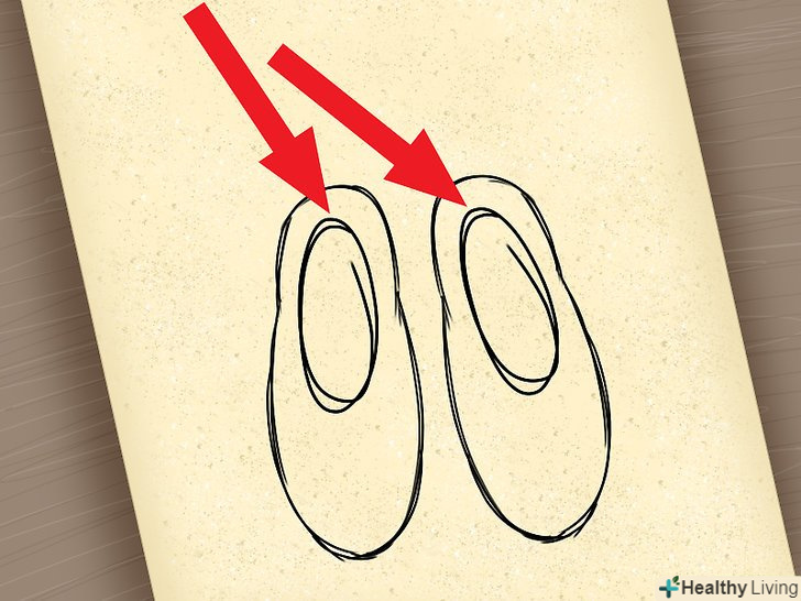 Почніть з носка пуантів, малюючи дугоподібну лінію зліва направо. вона повинна виглядати приблизно як підкова. Потім намалюйте другу дугу, злегка позаду першої (див.