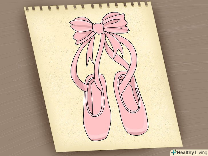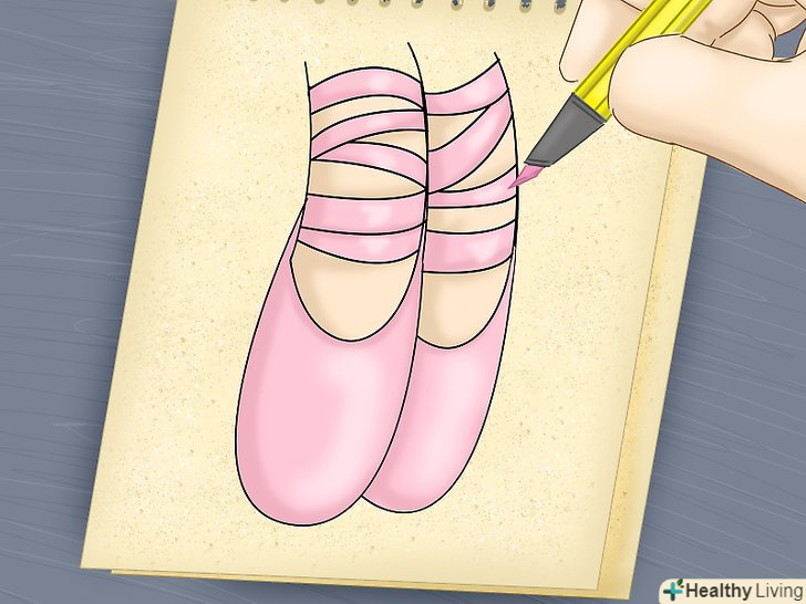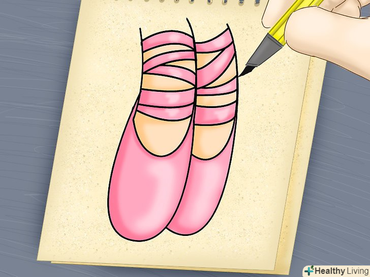 Окресліть малюнок чорним фломастером, ручкою або лайнером для малювання. для більш реалістичного ефекту міняйте товщину лінії від широкої до тонкої. Зітріть олівець, додайте кольору.- Стандартний колір пуантів-рожевий, але ви можете використовувати будь-який колір або навіть нанести візерунок.