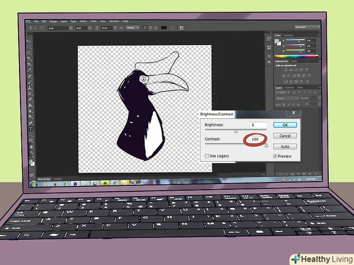 Відрегулюйте контраст зображення. на тому ж другому шарі переведіть зображення в шкалу відтінків сірого: для цього натисніть зображення gt; Режим gt; градації сірого. Після цього встановіть контрастність 100%. [5]- Щоб виставити контраст у Photoshop, натисніть зображення gt; Налаштування gt; яскравість/контрастність і виставте у вікні контрастності 100%.