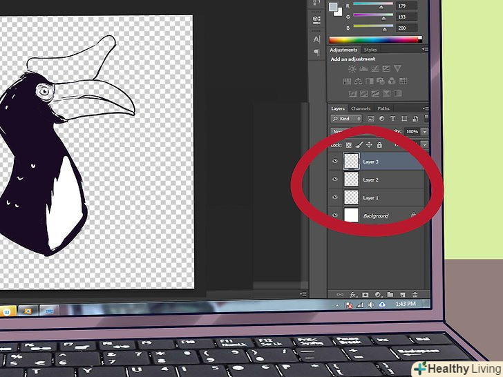Якщо ви робите різнобарвний ескіз, створіть кілька шарів. зробіть по одному окремому шару для кожного кольору. [7]- Після того як ви роздрукуєте зображення, зафарбуйте його різнокольоровими маркерами у відповідних місцях. Використовуйте по одному кольору для кожного аркуша, так щоб при поєднанні листів у вас вийшло повне зображення.