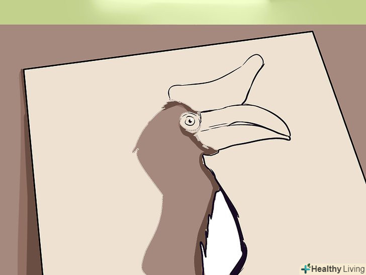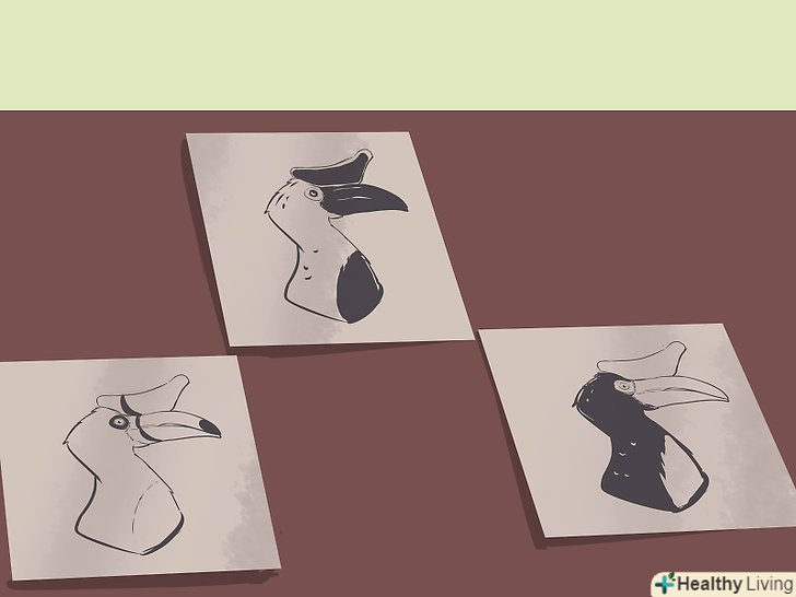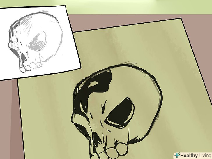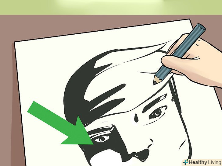 Спростіть занадто складні частини ескізу. при відсутності належного досвіду складно сказати, чи вдалий вийде трафарет. Часто прості та стилізовані місця відбиваються і виглядають краще, ніж складні ділянки з великою кількістю дрібних деталей.- Наприклад, якщо ви робите ескіз обличчя, можна спочатку намітити зовнішні контури, а потім перейти до зображення рис обличчя. При цьому зручно заштрихувати і вирізати тінь, яка простягається від нижньої щелепи до щік і рота, а потім піднімається з боків до самих очей.