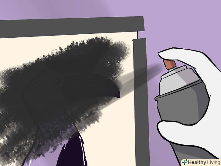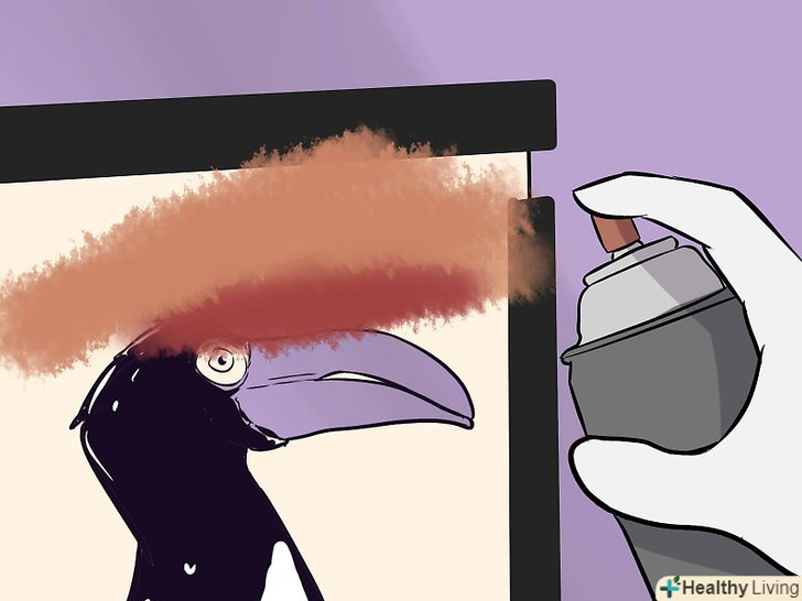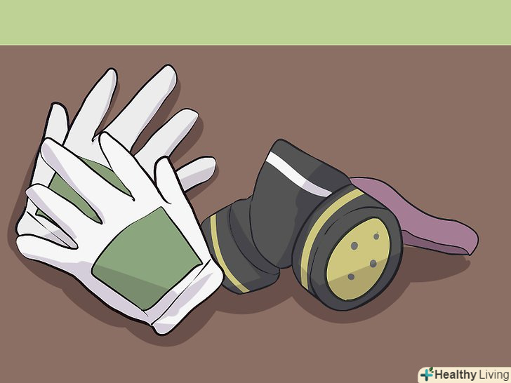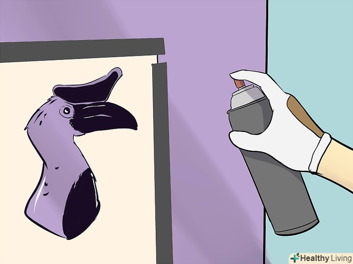 Одягніть рукавички і лицьову пов'язку або маску. Аерозольні фарби токсичні і при надмірному вдиханні можуть викликати пошкодження мозку. Щоб захистити своє здоров'я і не забруднити руки, надіньте одноразові рукавички і марлеву пов'язку, а краще респіратор.- Можна також прикрити обличчя банданою, хоча краще використовувати пов'язку або респіратор.