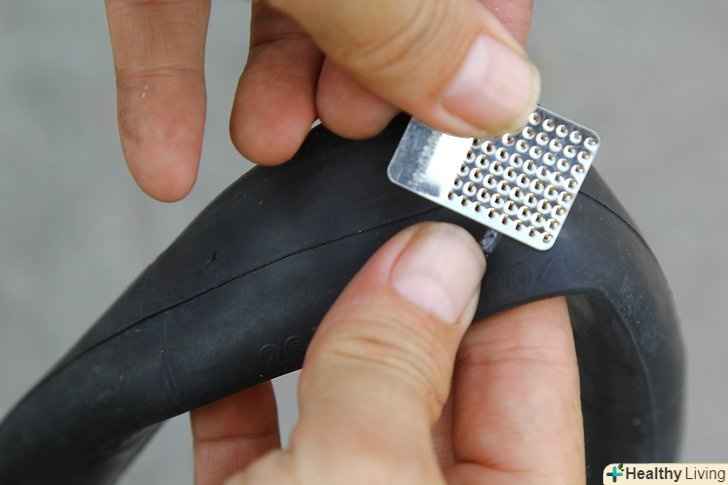 Зачистіть місце, де будете клеїти латку.для цього в більшості ремкомплектів є маленька металева терка або шматочок наждачки.