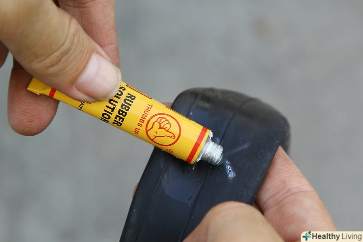Нанесіть тонкий шар клею навколо проколу.Дайте йому підсохнути до зникнення вологого блиску. Постарайтеся випустити з камери все повітря.
