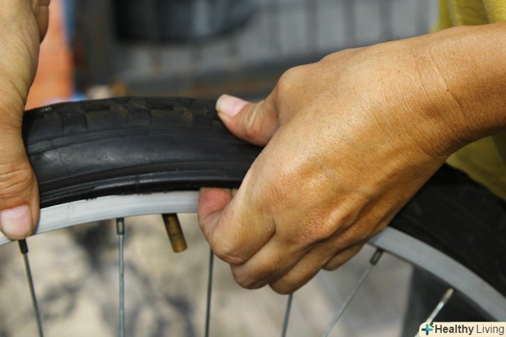 За допомогою долонь вставте покришку назад в обід.бажано не використовувати для цієї мети монтажки, і вже тим більше викрутку. Наше завдання-заправити борт покришки за край обода, не затиснувши камеру між покришкою або ободом і не пробивши камеру знову.