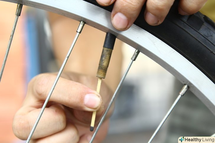 Випустіть залишився повітря з камери.натисніть на ніпель сірником або стрижнем ручки і випустіть повітря. Ніпель (він же автомобільний ніпель, ніпель Шредера або золотник) — маленький металевий циліндрик під ковпачком, через який повітря накачується в колесо.