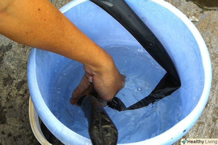 Злегка накачайте камеру, щоб визначити витік.чим більше ви накачаєте повітря, тим сильніше роздується камера (і прокол) і тим легше буде виявити місце проколу.