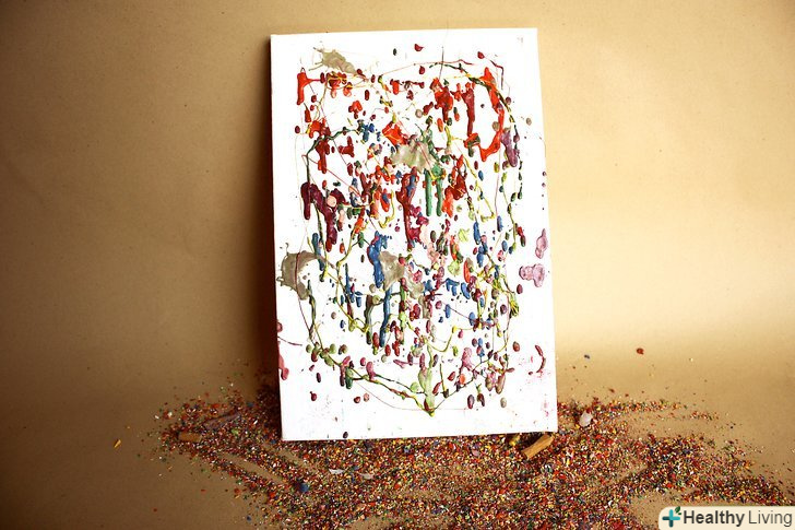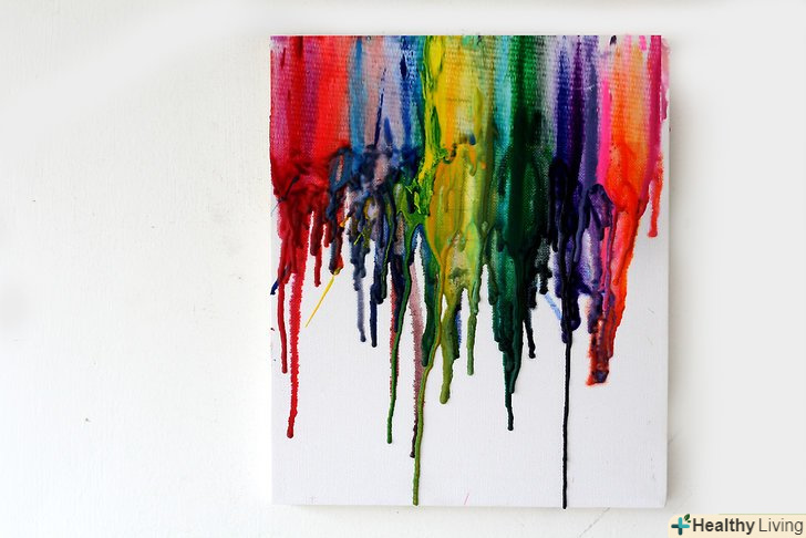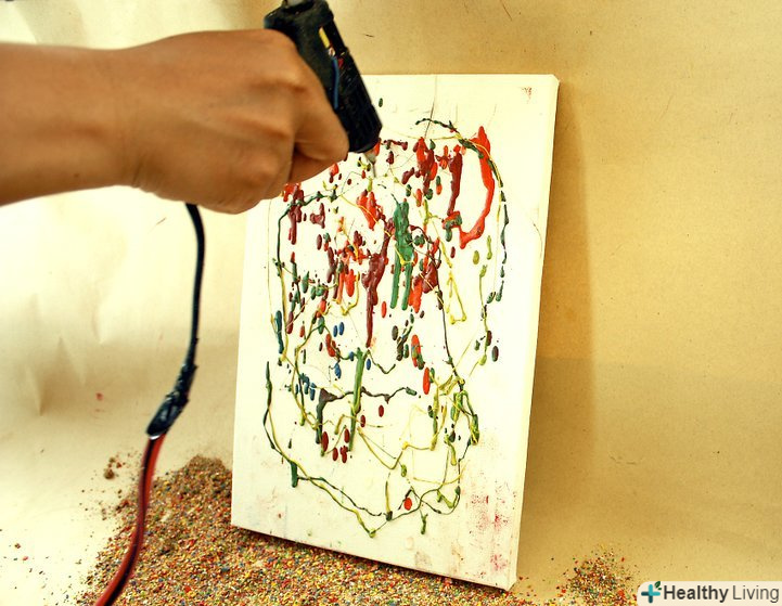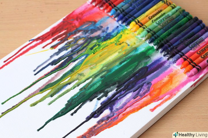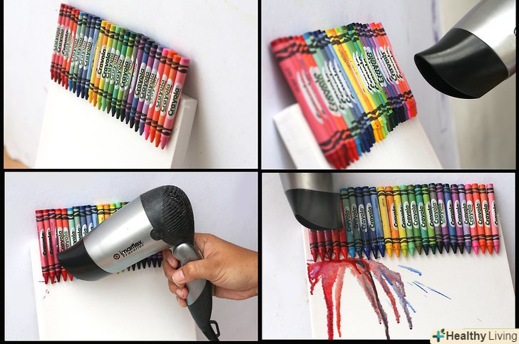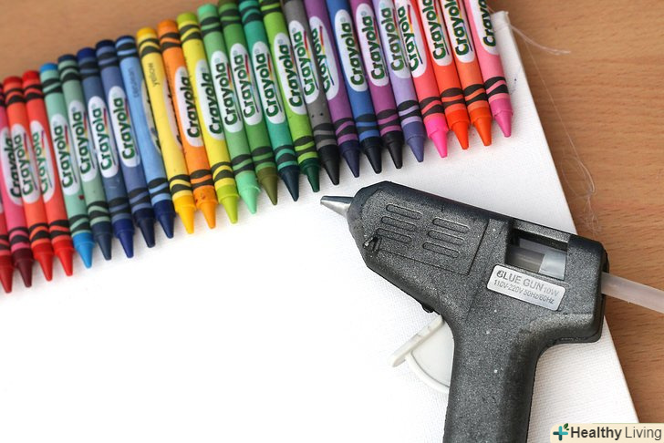 Купуйте витратні матеріали. вам знадобиться полотно (розмір на ваш розсуд), кольорові олівці (кількість в залежності від розміру полотна), пістолет для склеювання і фен. Можливо, варто покласти газету, стару футболку або ковдру під полотно в разі якщо віск розбризкається.- Поверхня, яка, на вашу думку, буде брудною, накрийте більш старанно. І не забудьте прикрити себе! Гарячий кольоровий віск на вашій шкірі та одязі не є частиною цього проекту.