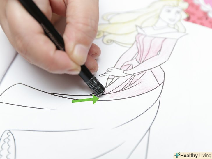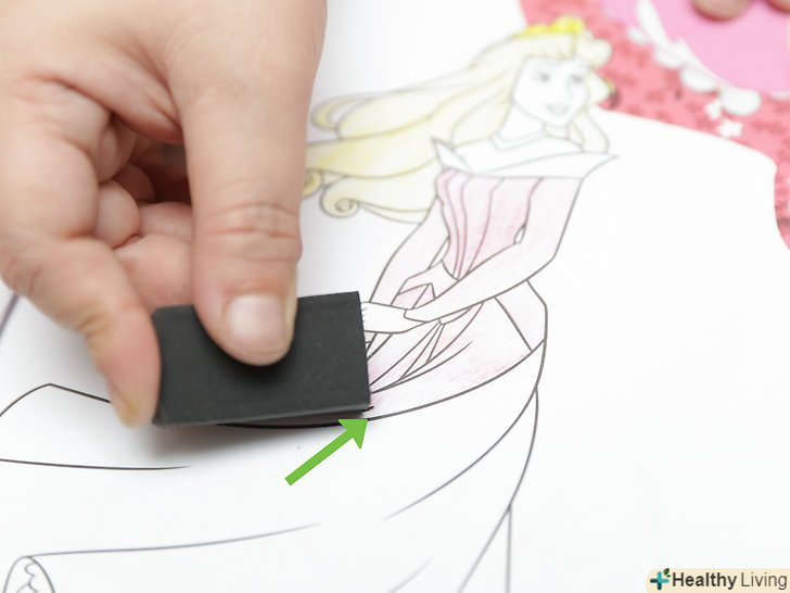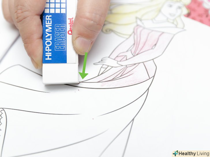 Використовуйте ластик для кольорових олівців так само, як і звичайний. тріть обережно, адже папір з малюнком, виконаним кольоровими олівцями, стає більш крихкою, ніж якби на ній що-небудь написали.- Дійте обережно, адже Гумки для кольорових олівців дуже жорсткі і їх грубою крупнодисперсною поверхнею можна легко пошкодити папір.