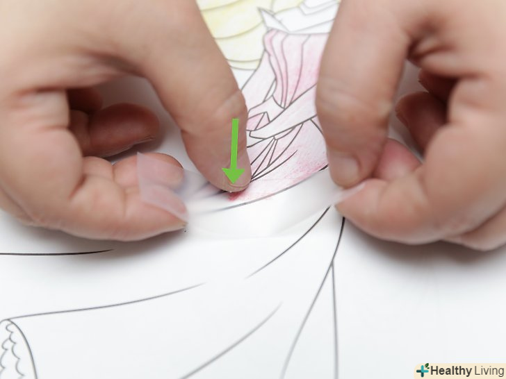 Для початку тріть робочу зону звичайним канцелярським ластиком. дійте обережно і не натискайте сильно. На цьому етапі необхідно підняти верхній шар пігменту з поверхні листа, щоб потім скотчем можна було легко завершити розпочате.- Так можна підготувати поверхню до дії стрічки. При цьому не варто намагатися стерти кольоровий олівець за допомогою звичайного гумки.
