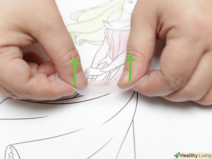 Зніміть скотч з паперу. до стрічки має прилипнути деяка кількість пігменту. Знімайте скотч Дуже обережно . На цьому етапі шанси порвати папір істотно збільшуються.- З кожним повторенням цього кроку шанси пошкодити папір збільшуються.