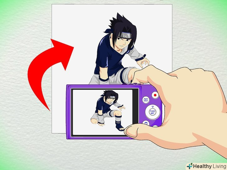 Сфотографуйте зображення.поставте камеру на штатив на хорошій відстані від стіни, щоб сфотографувати зображення.- Візьміть наступний аркуш паперу і прикріпіть його на те ж місце для фотографії.вам потрібно сфотографувати кожне зображення, яке ви намалювали.