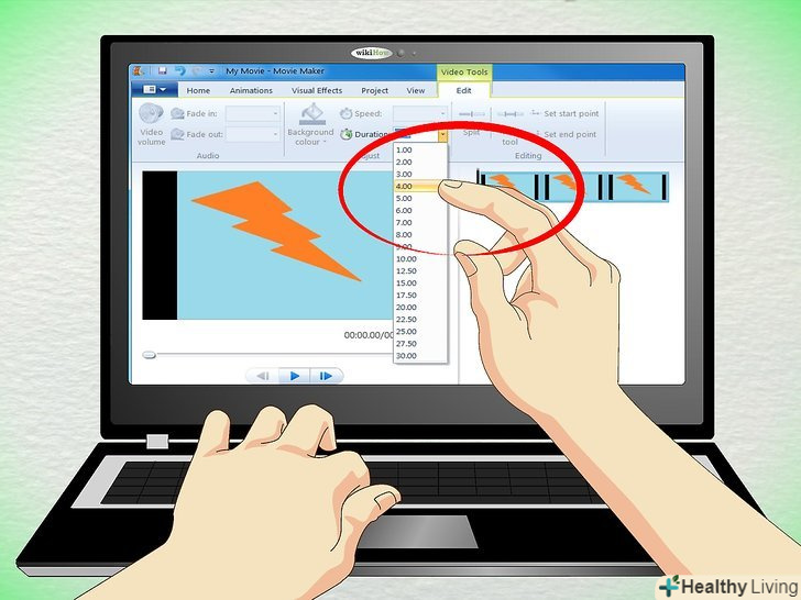 Завантажте ці фотографії на комп'ютер.відкрийте завантажені фотографії в редакторі (тобто в MovieMaker) і зробіть кожен кліп по 0,1 секунді в довжину (або менше).