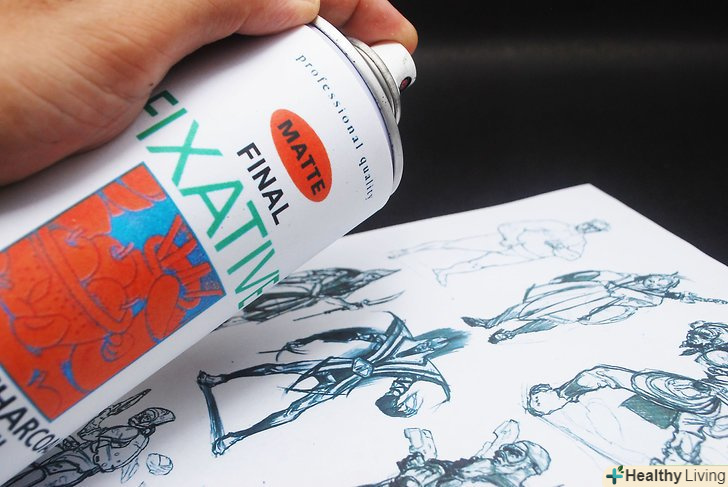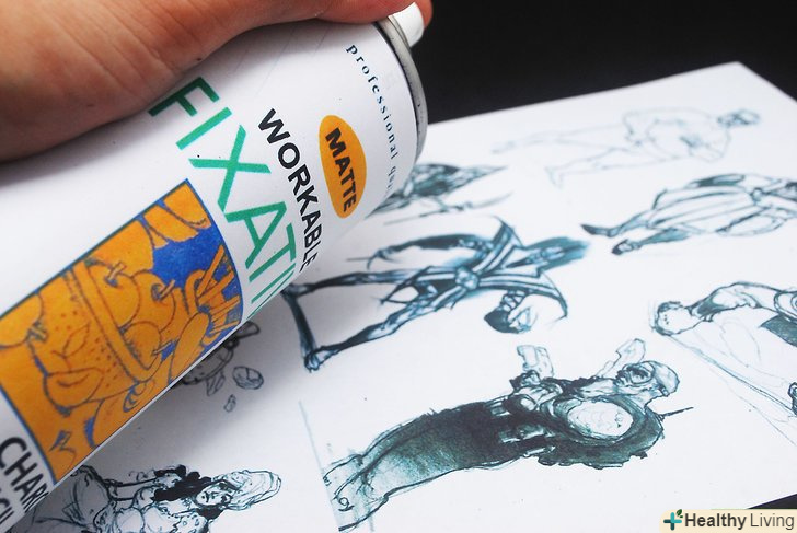 Фіксуйте малюнок у міру просування роботи. Добудьте флакон з робочим фіксатором. Фіксатори бувають різних типів, переконайтеся в тому, що ви взяли робочий варіант. Цей тип фіксатора запобігає розмазуванню, але може бути стертий, поверх нього також можна малювати. Не використовуйте занадто багато фіксатора, так як через це можуть виникнути труднощі з малюванням. Помірне використання фіксатора дійсно створює позитивний ефект.