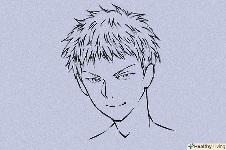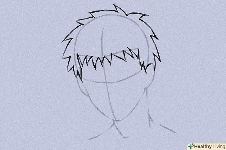 Постарайтеся уявити просту, коротку чоловічу зачіску «їжачок». можете малювати зигзагоподібні лінії уздовж голови або загострені кути волосся.
