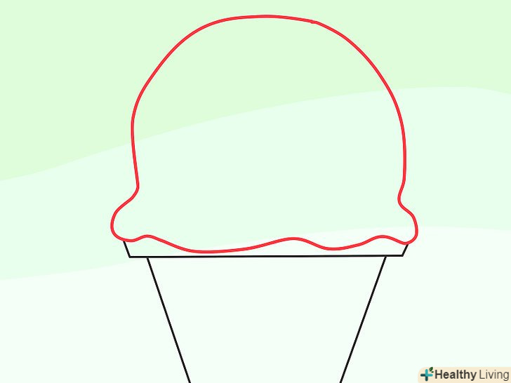 Зверху ріжка намалюйте кульку морозива.