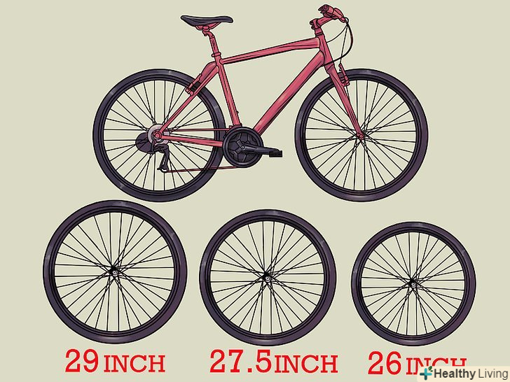 Вибирайте раму, розраховану на більші колеса, щоб було зручніше і простіше проходити важку трасу.збільшені колеса стають все більш популярними, але їх не можна замінити на менші, так як рама підлаштована тільки під них. Існує три основні розміри коліс.- 29 дюймові (73,7 см). Ці величезні колеса з легкістю вивертають камені і коріння, забезпечуючи хороше зчеплення з трасою. Вони добре розганяються на спусках, але їм важко набирати швидкість на рівній трасі.