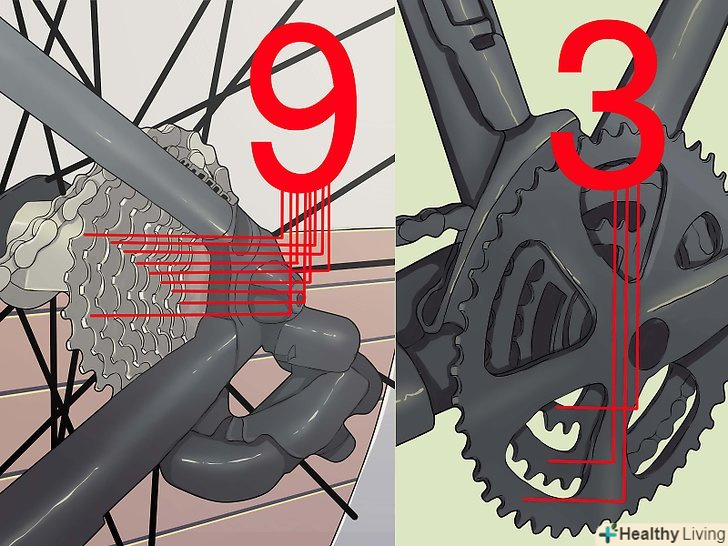 Розберіться в шестернях і передавальних числах.зубчаста передача може здатися складною, але ви повинні запам'ятати два моменти. По-перше, чим більше передач, тим більше можливості знайти ідеальний опір при підйомі або спуску. Але додаткові шестерні можуть збільшувати вагу велосипеда, що небажано, якщо ви гонщик або гірський байкер, часто піднімається в гору.- Класична зубчаста передача - це 3 передачі спереду і 9 ззаду, в результаті виходить «27-ми швидкісний велосипед».[16]