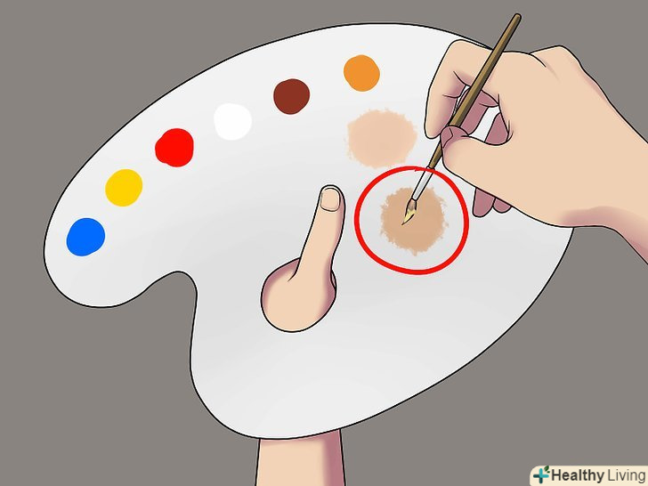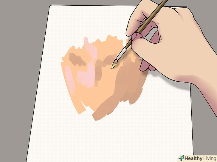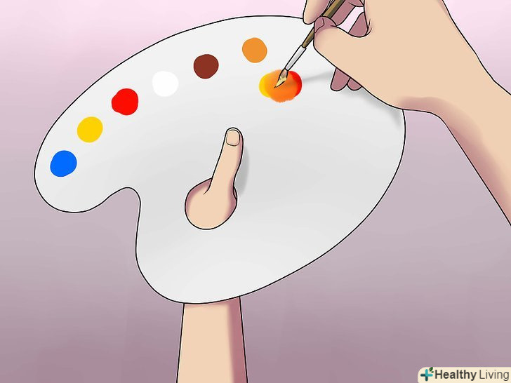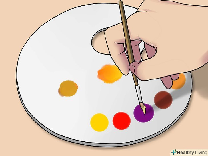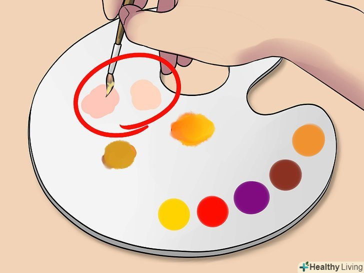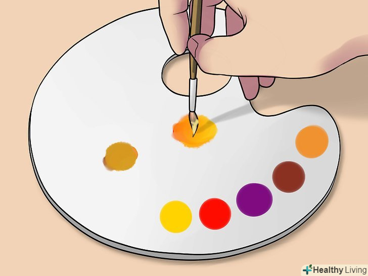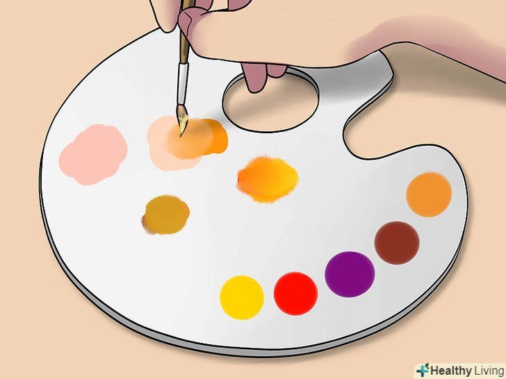 Освітлити відтінок. цього можна домогтися, додавши в основу помаранчевий колір. Для того щоб вийшов помаранчевий колір, змішайте жовту і червону фарби. Помаранчевий добре освітлить основу, надавши їй природний відтінок, в той час як білий занадто сильно розбавить колір. [6]