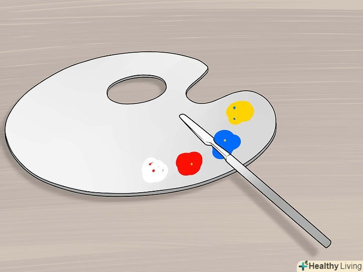 Змішайте кольори. найзручніше змішувати фарби на спеціальній палітрі. Якщо палітри немає, то підійде будь-яка інша робоча поверхня. Наприклад, ви можете використовувати шматок щільного картону. Нанесіть на палітру по краплі фарби кожного кольору.