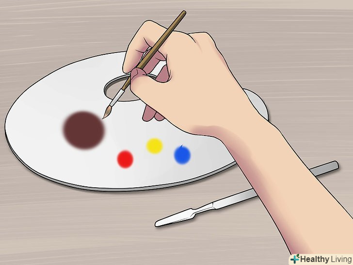 Змішайте фарби в рівних кількостях. за допомогою кисті змішайте однакову кількість червоної, жовтої і синьої фарби. Обов'язково промивайте кисть в ємності з водою, перш ніж вмочати її в фарбу іншого кольору. Змішавши три основних кольори, ви створите основу.- У вас вийде темний відтінок. Так і повинно бути, тому що далі ви будете його освітлювати. [2]