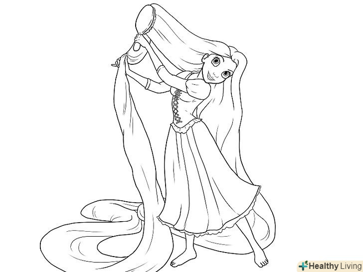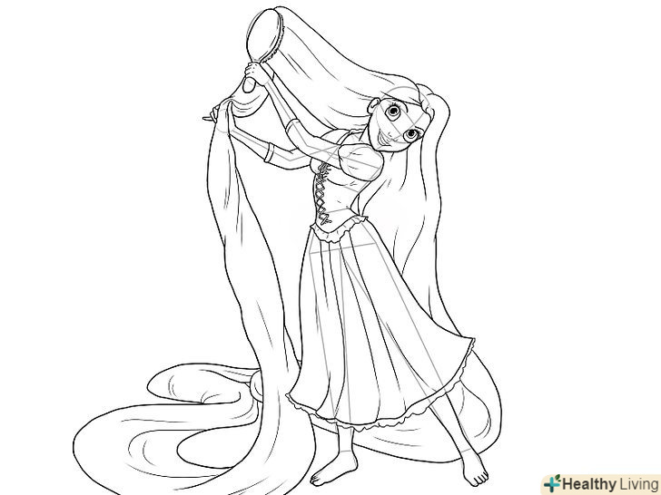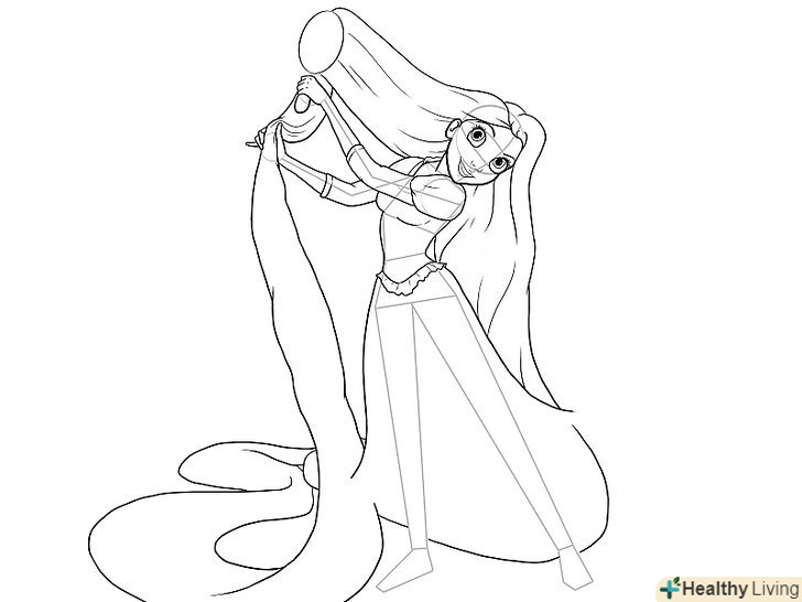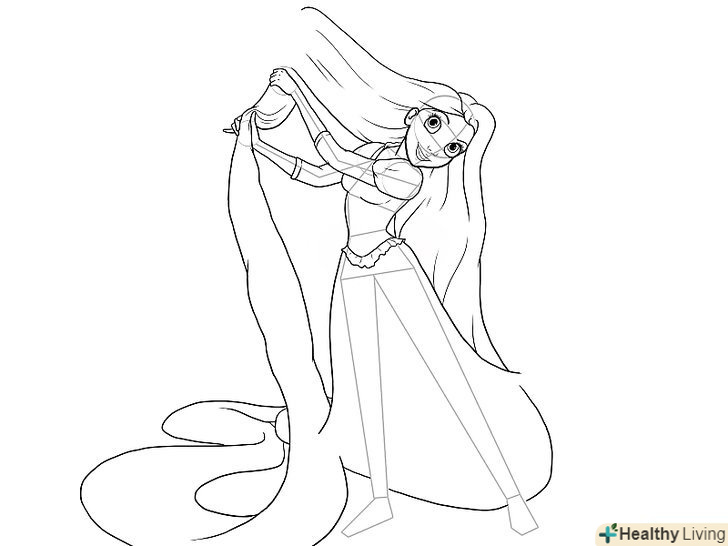 Намалюйте довгі, спадаючі вниз під силою своєї тяжкості розпущене волосся Рапунцель.