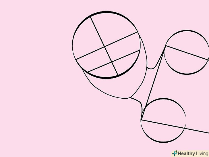Намалюйте трохи по діагоналі вертикальну лінію в центрі кола для голови, проводячи її в сторону U-подібної фігури. намалюйте дві перпендикулярні лінії, що перетинають цю лінію всередині кола. Ці лінії послужать орієнтиром для малювання очей і інших деталей особи.