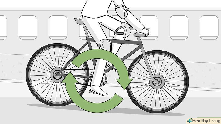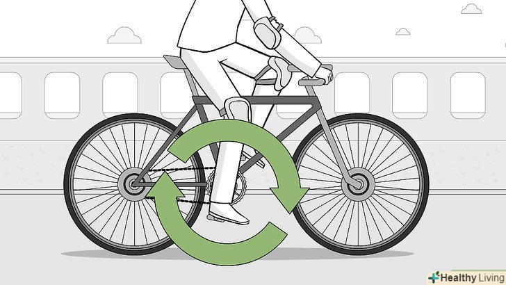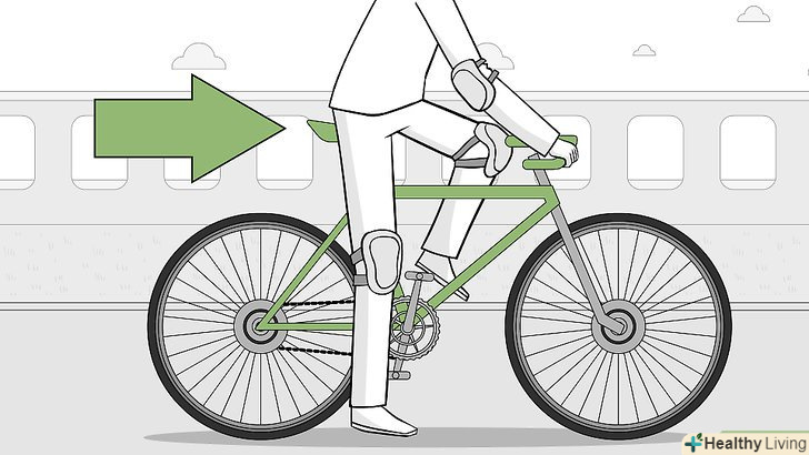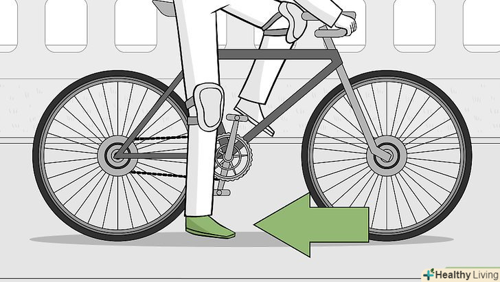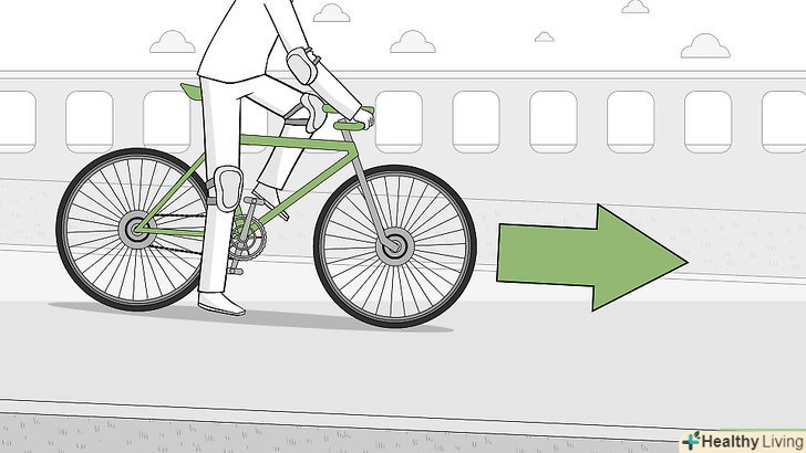 Почніть крутити педалі.поставте одну ногу на землю, а другий упріться в ту педаль, яка спрямована вгору. Відштовхніться, поставте другу ногу на нижню педаль і почніть рух! Зберігайте рівновагу якомога довше.- Чим швидше рух, тим простіше зберігати рівновагу, але на швидкості складніше керувати велосипедом.