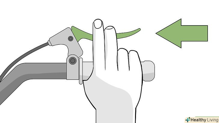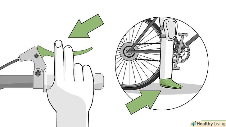 - Зверніть увагу, що якщо затиснути заднє гальмо, то заднє колесо припинить рух. Якщо затиснути Переднє гальмо, то велосипед трохи "пірне" вперед.[9]