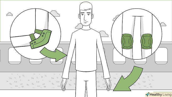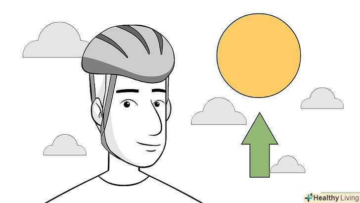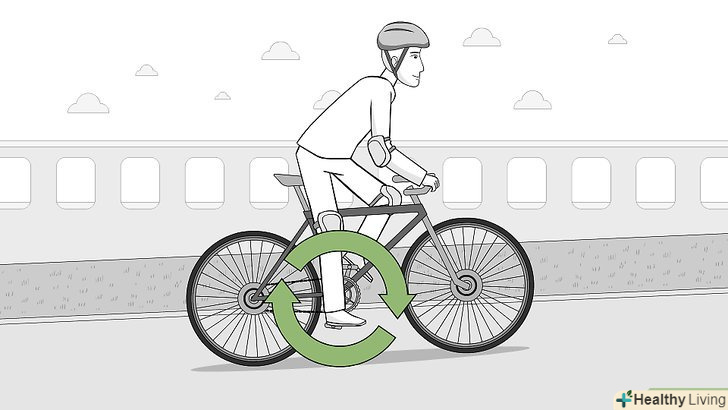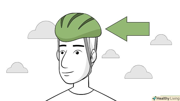 Одягайте шолом.Шоломи рекомендується носити як новачкам, так і досвідченим велосипедистам. Ніхто не знає, коли можна потрапити в аварію. Зламані кістки зростаються досить швидко, але поширені при аваріях травми голови можуть мати тривалі наслідки. У деяких випадках шолом є вимогою закону.[2]- Шолом потрібно вибирати за розміром голови. Хороший шолом повинен щільно сидіти і розташовуватися на пару сантиметрів вище брів. Спеціальний ремінь дозволяє зафіксувати шолом під нижньою щелепою, але при цьому вона залишається рухомою.