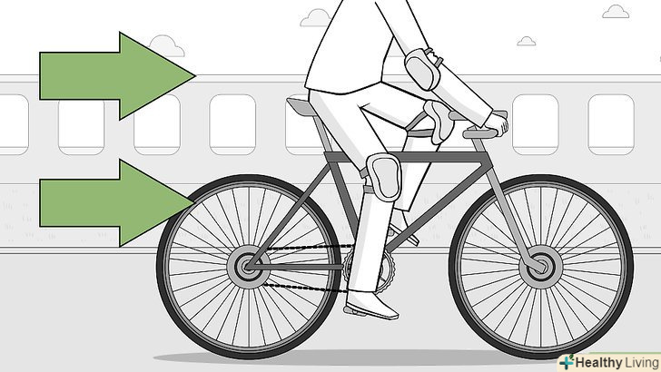 Дивіться прямо перед собою.якщо дивитися на перешкоди, то велосипед наїде прямо на них. Намагайтеся направляти погляд по обраному маршруту руху. Буде потрібно деякий час, щоб звикнути і не відволікатися по сторонах.- Спочатку не намагайтеся змінити напрямок руху. Велосипед буде згортати в бік або рухатися по колу. Не намагайтеся повернути або зупинитися, продовжуйте рух і не втрачайте рівновагу.[13]