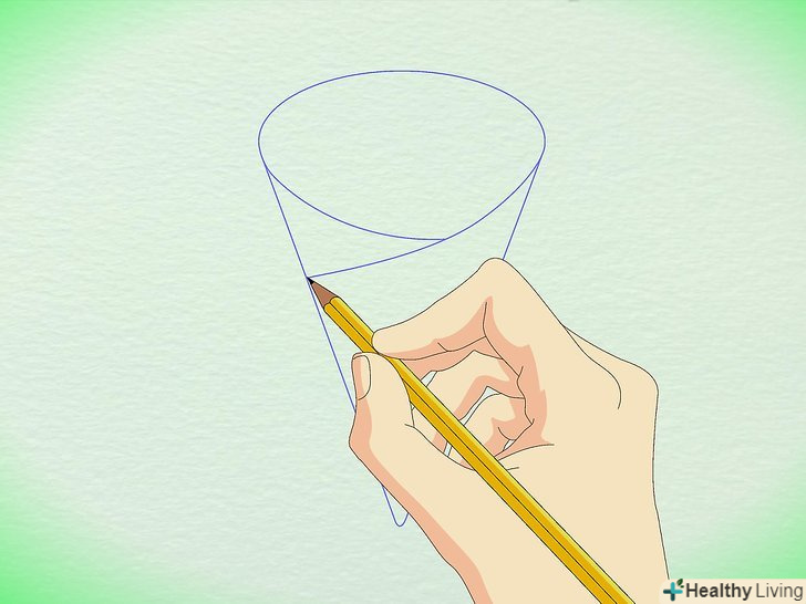 Намалюйте ще дві похилі лінії, схожі на перші дві. Заштрихуйте залишилася площа конуса перехресними похилими лініями.
